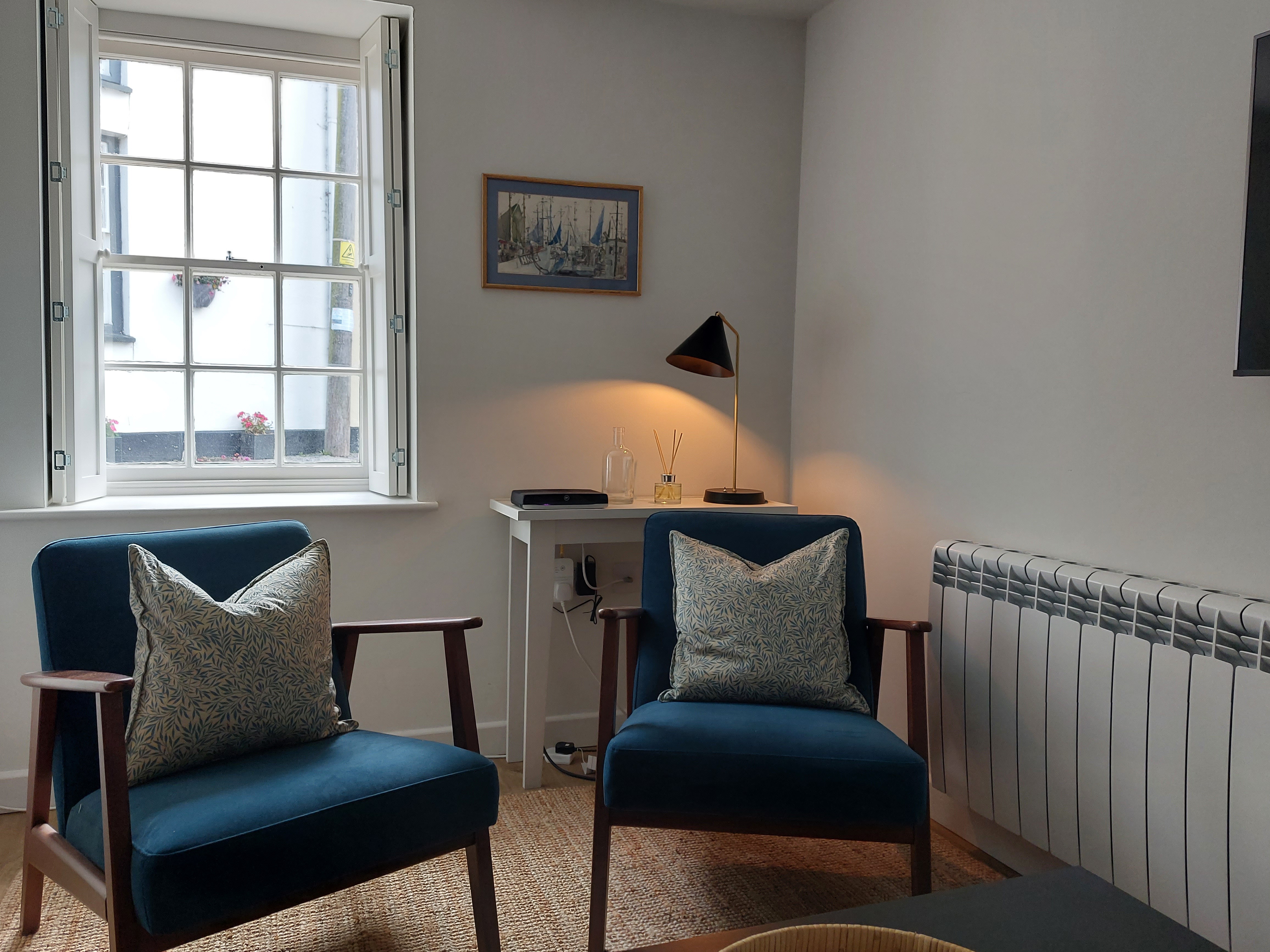 Living - The homely cosy sitting room has all of today's modern comforts. The house is fitted with efficient smart heating to keep you toasty on windswept days. There is a fabulously comfy sofa to recline on, two comfortable chairs, a smart TV, plenty of books on the local area and even OS maps so you can plan your adventures (of which there are many within easy walking distance).