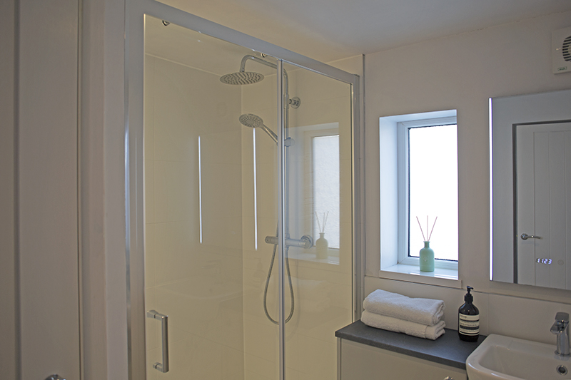 Bathing - Both bathrooms have walk in showers and come complete with a heated towel rail to keep towels warm and fluffy. the bottom bathroom also has a butler sink perfect for wetsuits (or babies!).